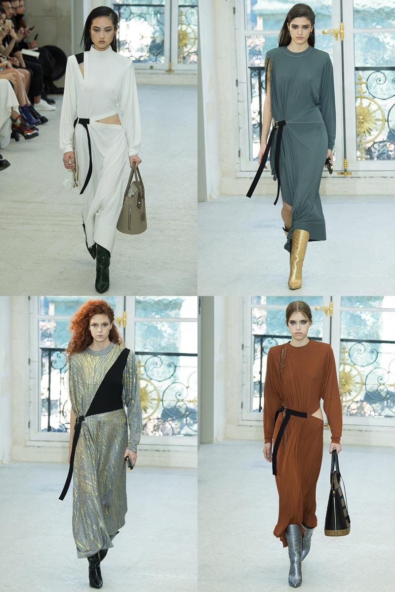 1. Show Louis Vuitton dibuka oleh koleksi dress berpotongan bias yang menonjolkan lekuk tubuh. Glamor, modern, dan futuristic ya Bela?!