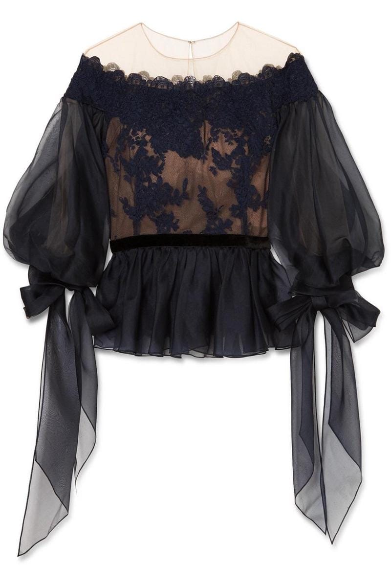 Lace and tulle peplum top, Marchesa, Net-A-Porter