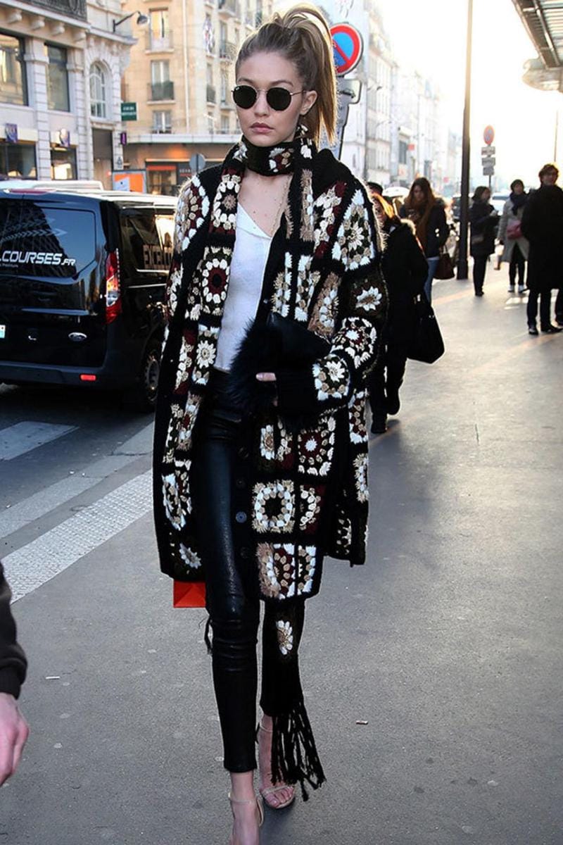 4. Statement outer plus leather leggings ala Gigi Hadid terlihat simply fashionable sebagai OOTD.