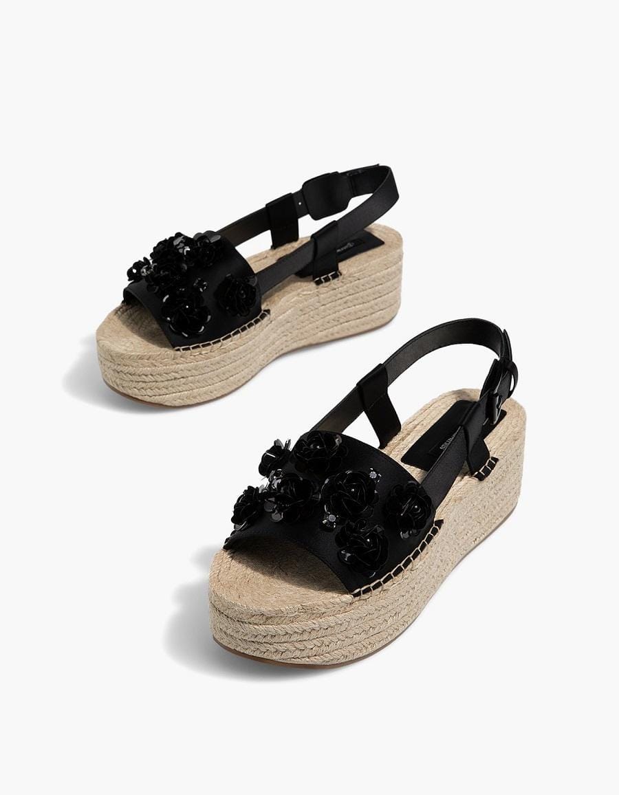 Black floral wedges, Stradivarius