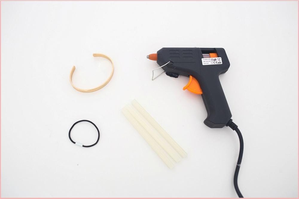 Selanjutnya, bersihkan bagian dalam dari gelang old cuff, lalu berikan lem dan tempelkan ikat rambutmu tepat di tengah.