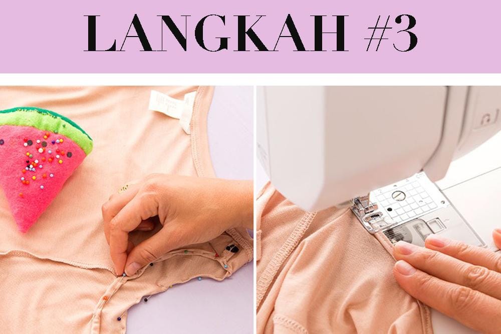 3. Setelah itu lipat lengan yang kamu gunting, dan berikan jarum pentul sebelum kamu menjahitnya dengan mesin jahit atau jahit manual.