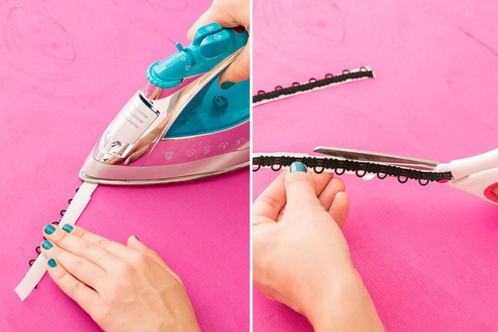 4. Pasangkan keduanya tersebut di bagian sisi kiri, dan kanan baju yang sudah kamu bentuk jadi segitiga dan lalu setrika sehingga menempel, jika belum terlalu kuat, alternatif lain kamu bisa menjaitnya. Langkah terakhir adalah masukkan tali serut seperti kamu membuat tali sepatu.