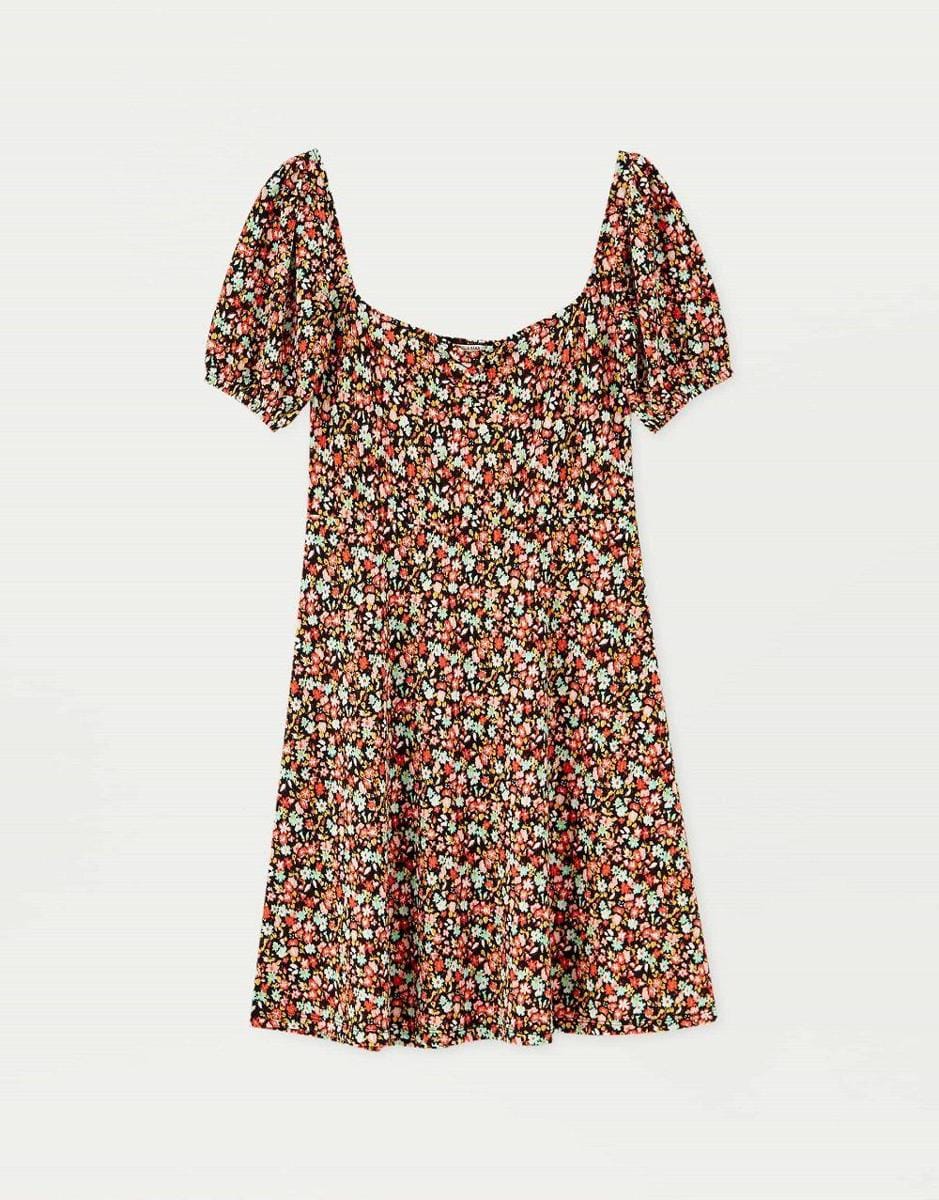 Short floral print dress with square-cut neckline, Pull & Bear, IDR 299,900