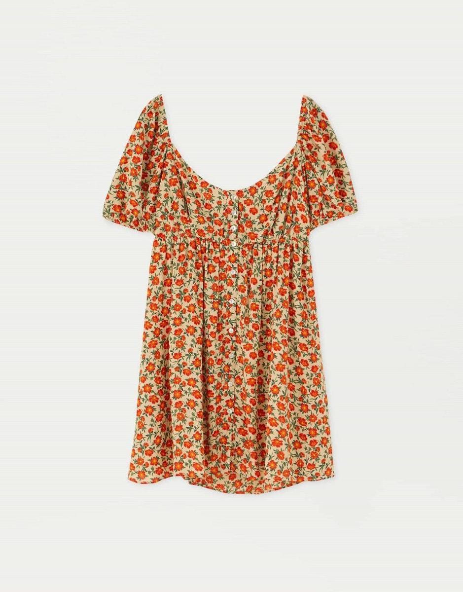 Floral print buttoned mini dress, Pull & Bear, IDR 499,900