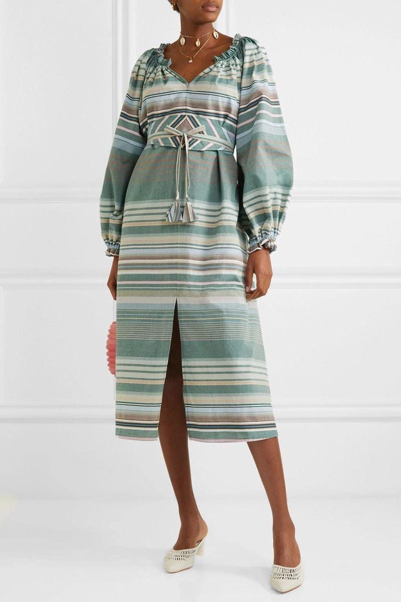 Bardot belted striped cotton dress, Anna Mason, $832