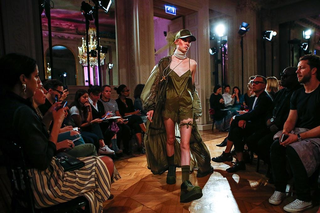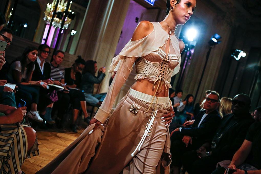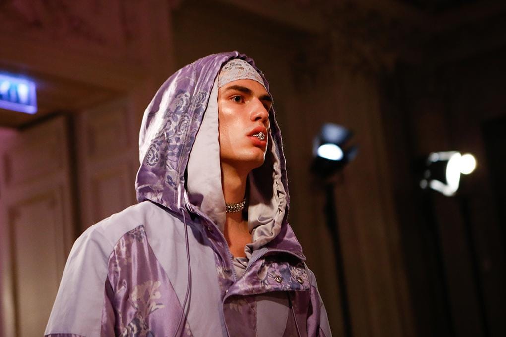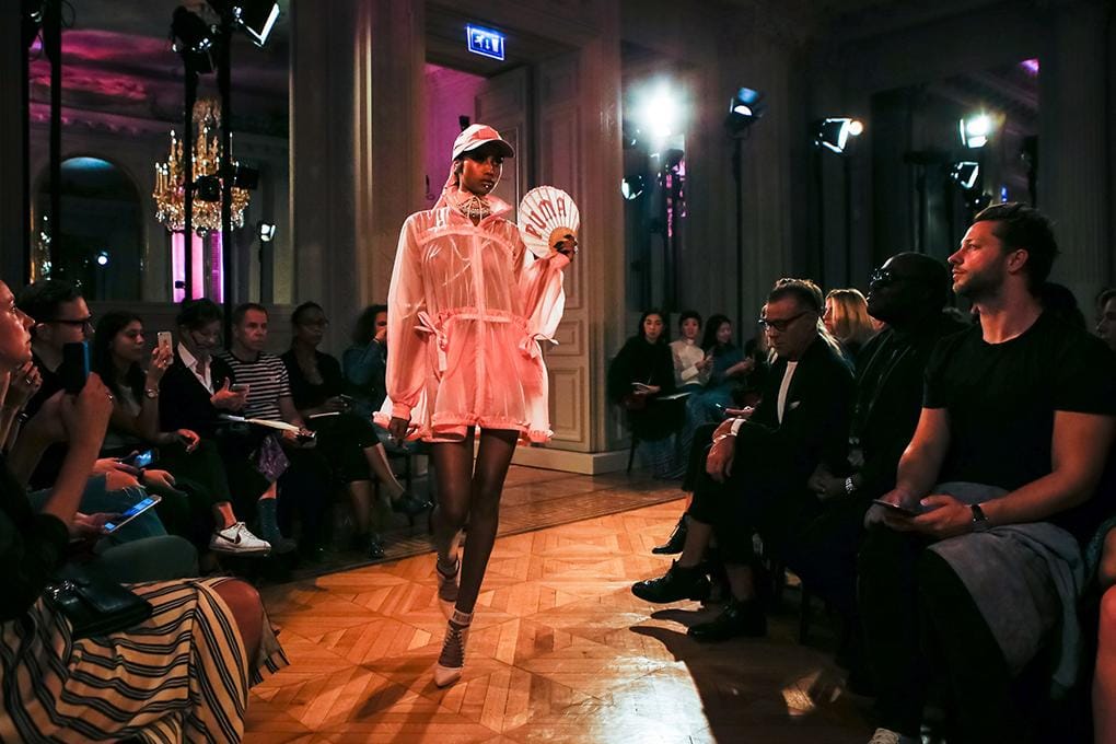 2. Show dibuka oleh Imaan Hammam yang mengenakan parka pink transparan dengan detail ruffles. Sambil membawa kipas bertuliskan Puma, ia terlihat rebel dalam aksesori perhiasan, do-rag, dan baseball cap.