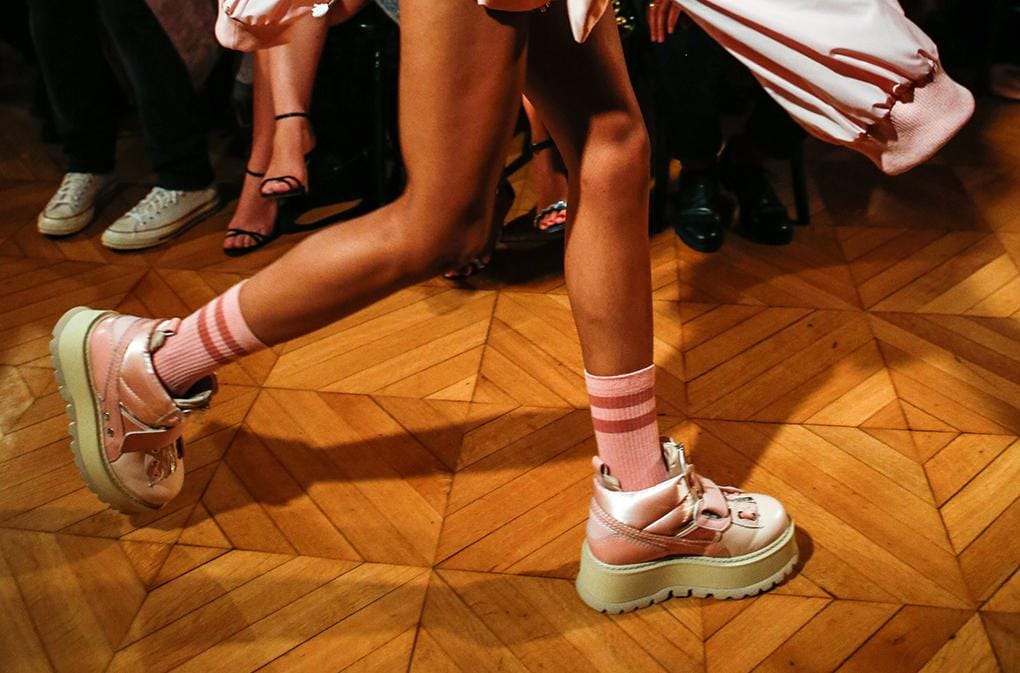 5. Tampak anggun dibagian atas dan sporty pada alas kakinya. Rihanna menghadirkan koleksi sepatu boots dengan sol creeper yang dijamin akan laku keras.