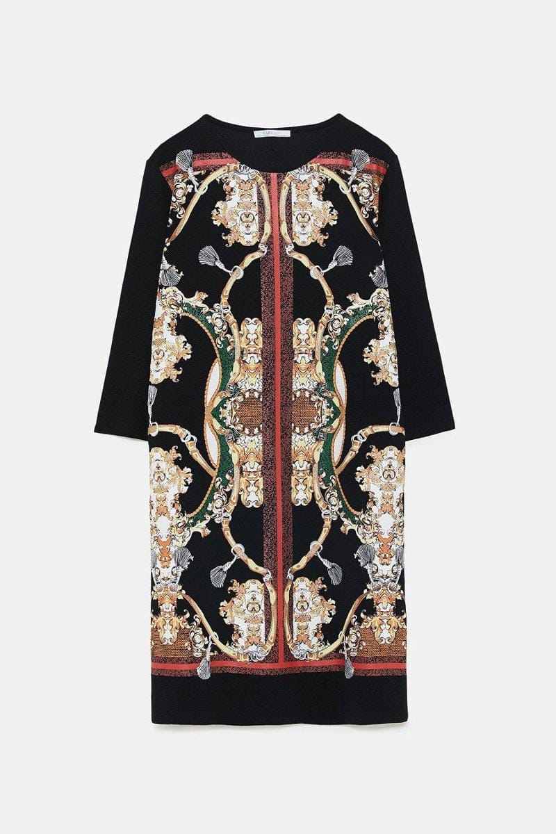Rubberised print contrast dress, ZARA, IDR 299,900