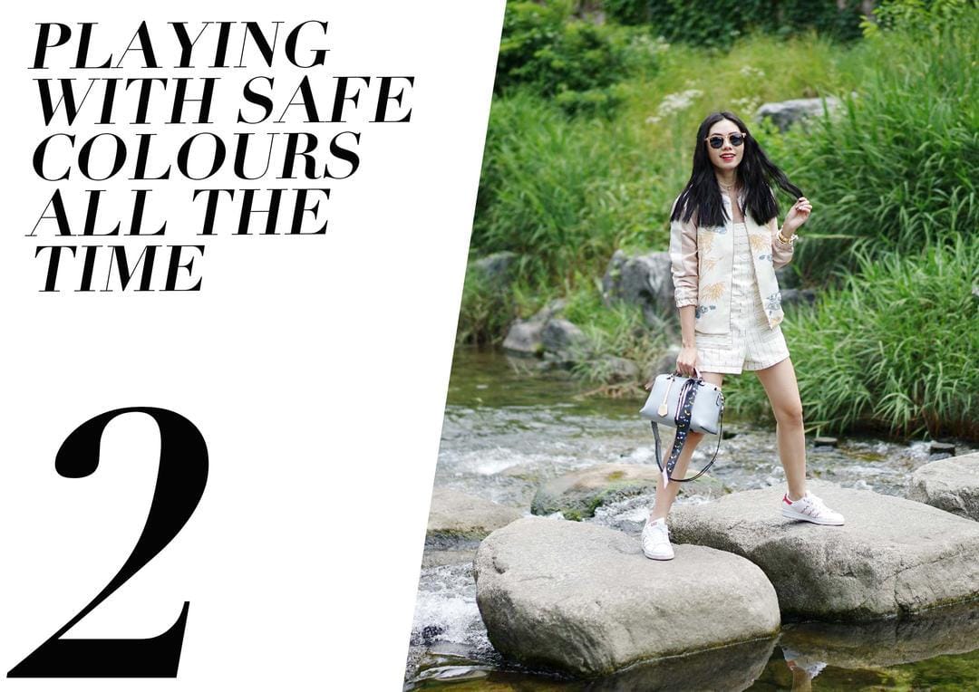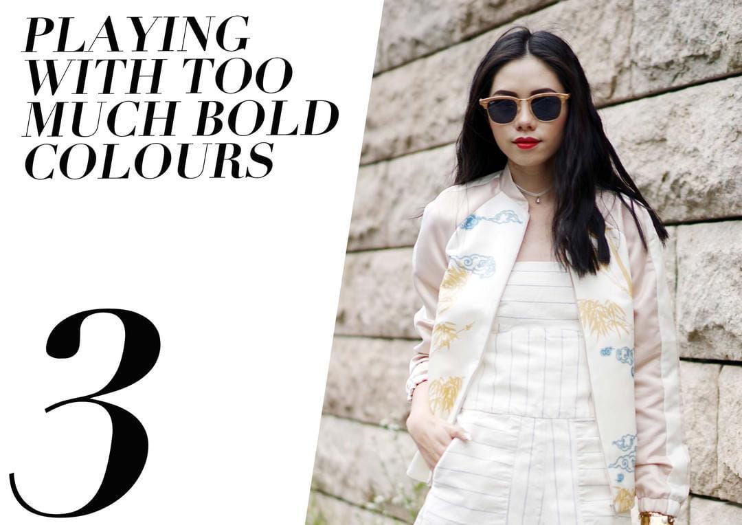 Di sisi lain, cobalah untuk menghindari bermain terlalu banyak bold colours. Misalnya kamu mengkombinasikan atasan fuschia, bawahan neon, dan tas hijau. Well, the key here is always about balance.