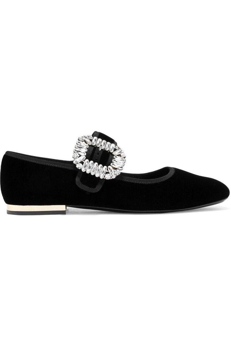 Strass crystal-embellished velvet ballet flats, Roger Vivier, $834