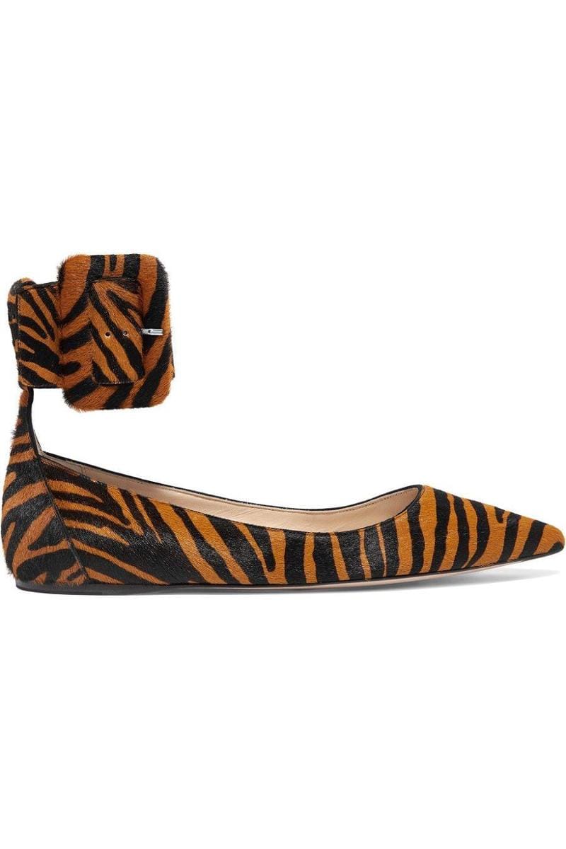Nggak selalu harus memakai high heel, sesekali saat ke kantor kamu juga bisa mengandalkan flat shoes lho! Nah, salah satu model sepatu tersebut yang dapat menjadi pilihanmu adalah dengan detail embellished.