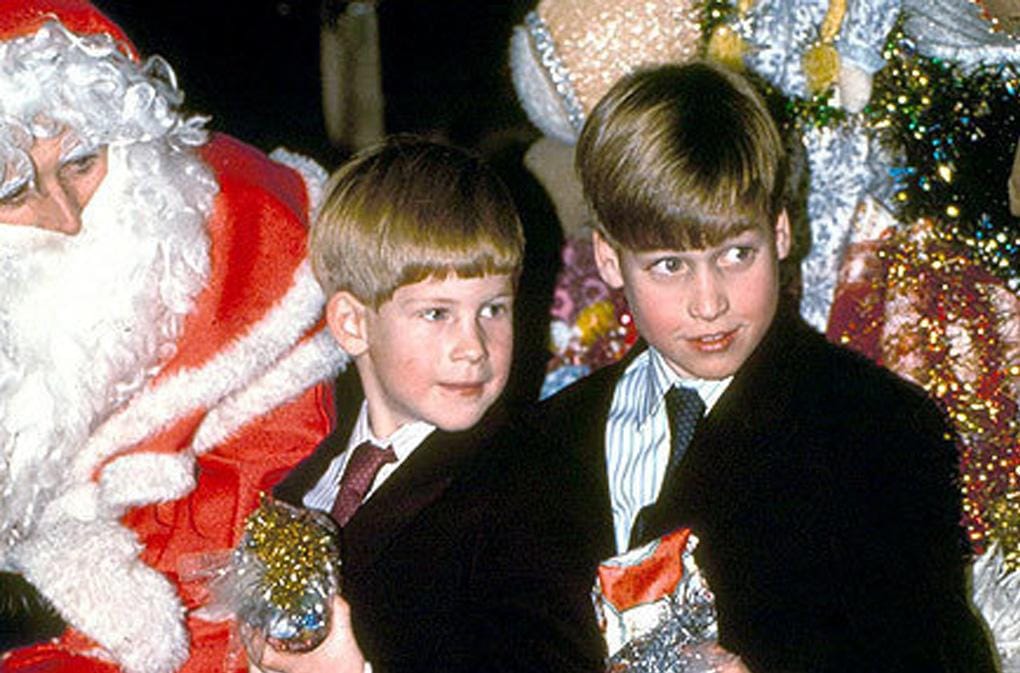 6. Pangeran Harry dan William menikmati acara bertukar kado, yang didampingi Santa.