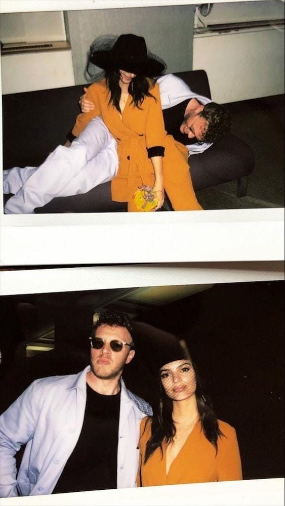 5. Gaun pengantin nggak harus gaun! Emily Ratajkowski menikah di balai kota memakai setelan jas berwarna coklat dengan topi fedora.