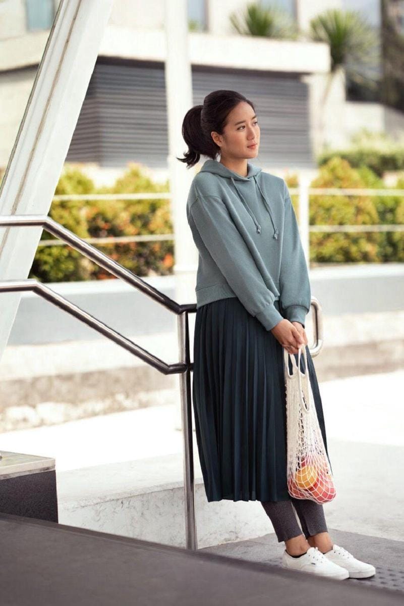 Chef Renatta Moeloek yang gemar dengan gaya boyish ini juga berhasil buat penampilannya nggak tampak "gitu-gitu" aja pullover hoodie dari UNIQLO kali ini 180 derajat lebih trendi saat dipasangkan dengan pleated skirt dan sneakers. Pilihan lainnya yang dapat kamu contek ialah kombinasikan pleated skirt dengan legging seperti look kedua ini.