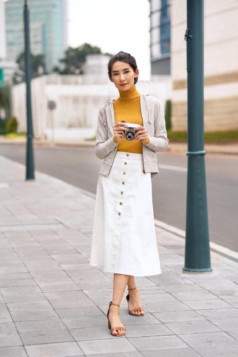 2. Gaya kasual lebih menarik dengan sentuhan pleated skirt