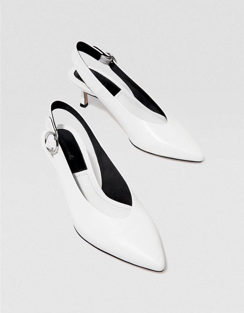White slingback high-heel court shoes with buckle, Stradivarius, IDR 559,900