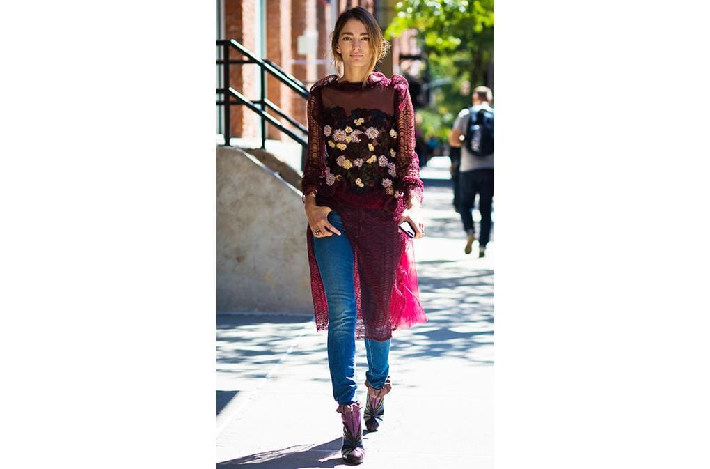 Berikan unsur tak terduga dengan mengkombinasikan skinny jeans kamu dengan sebuah dress. Gaya seperti ini akan menciptakan kesan chic secara instan.