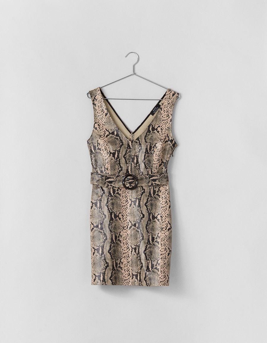 Snakeskin print faux leather dress, Bershka, IDR 299,900