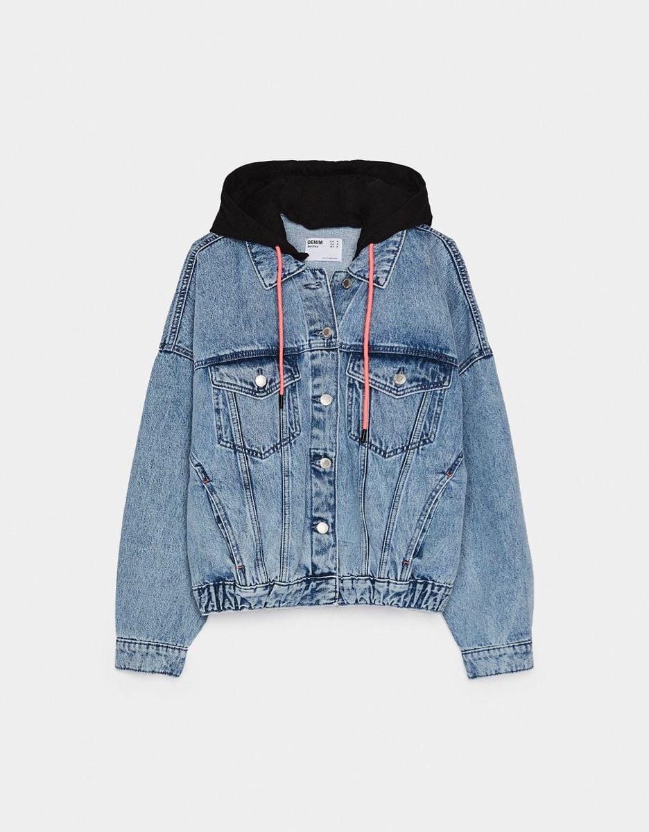 Oversized acid wash denim jacket with hood, Bershka, IDR 799,900