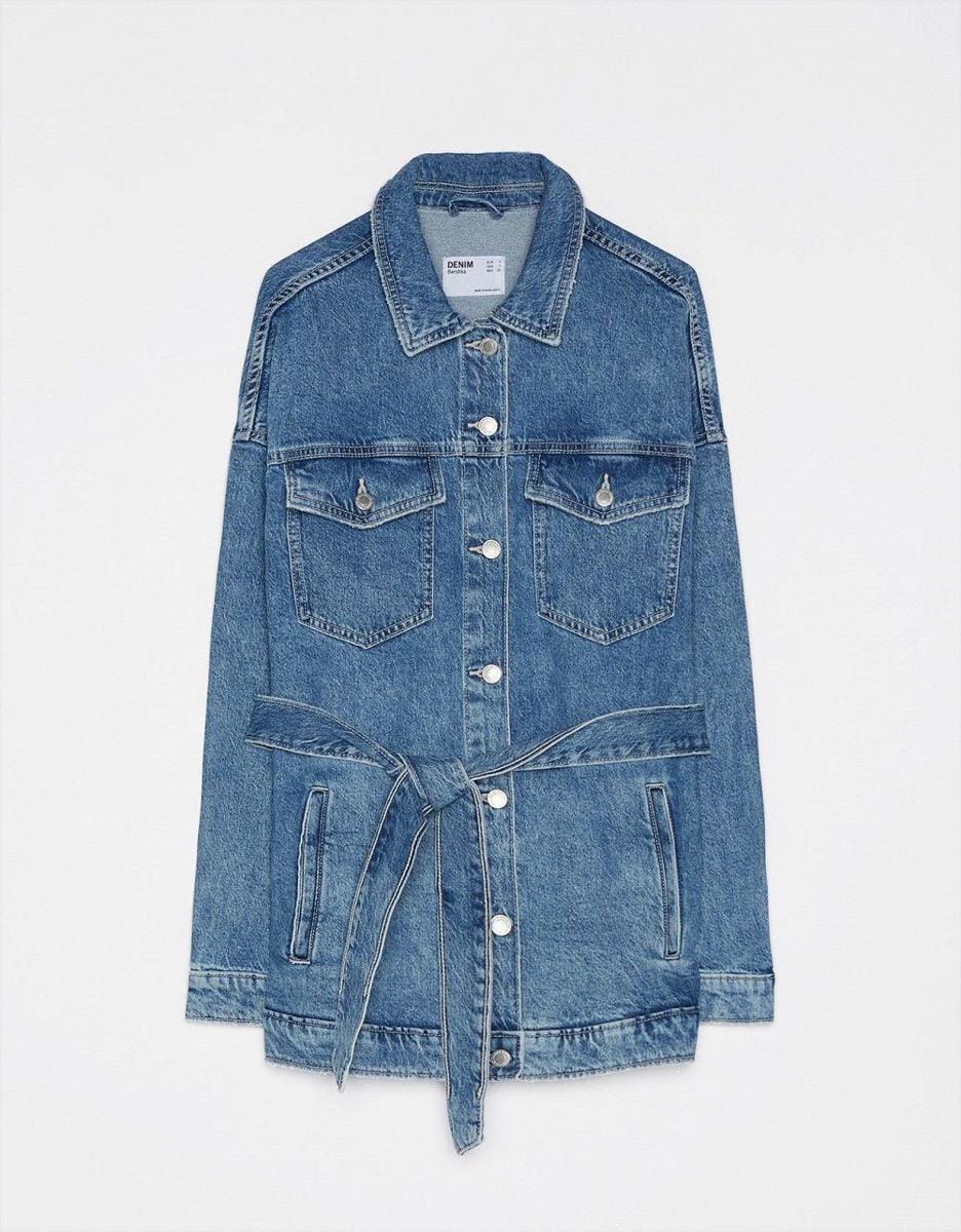 Denim jacket with belt, Bershka, IDR 799,900