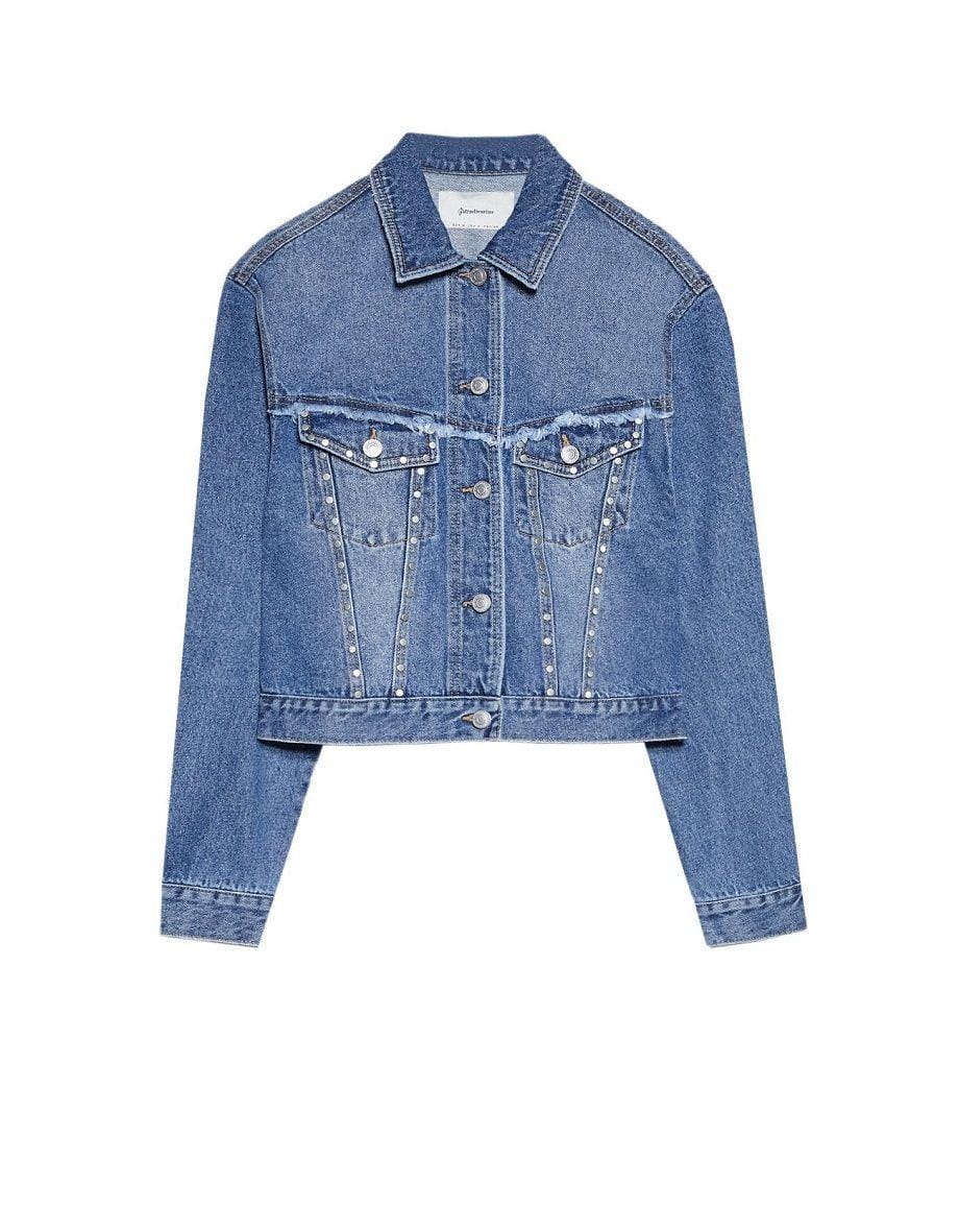 Denim jacket with studs, Stradivarius, IDR 699,900