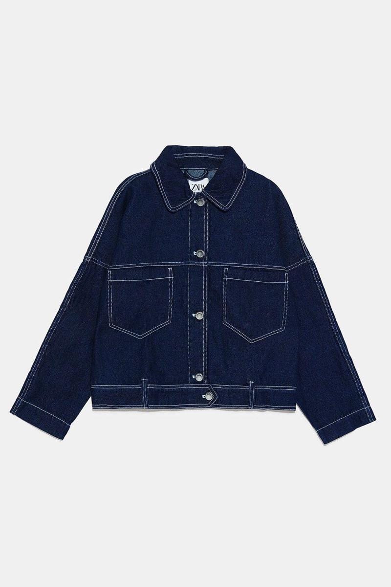 Denim jacket with contrast topstitching, ZARA, IDR 599,900
