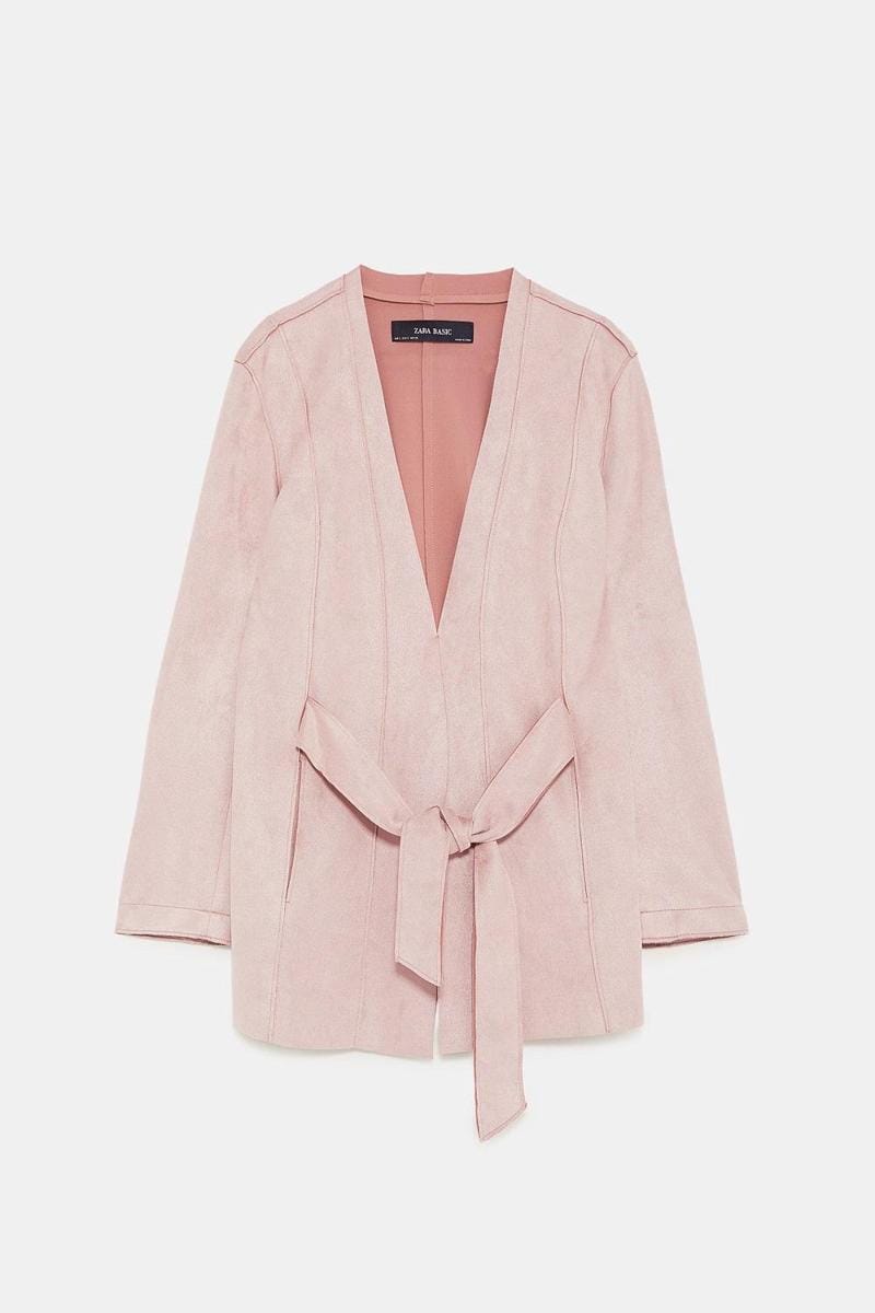Faux suede jacket with belt, ZARA, IDR 379,900