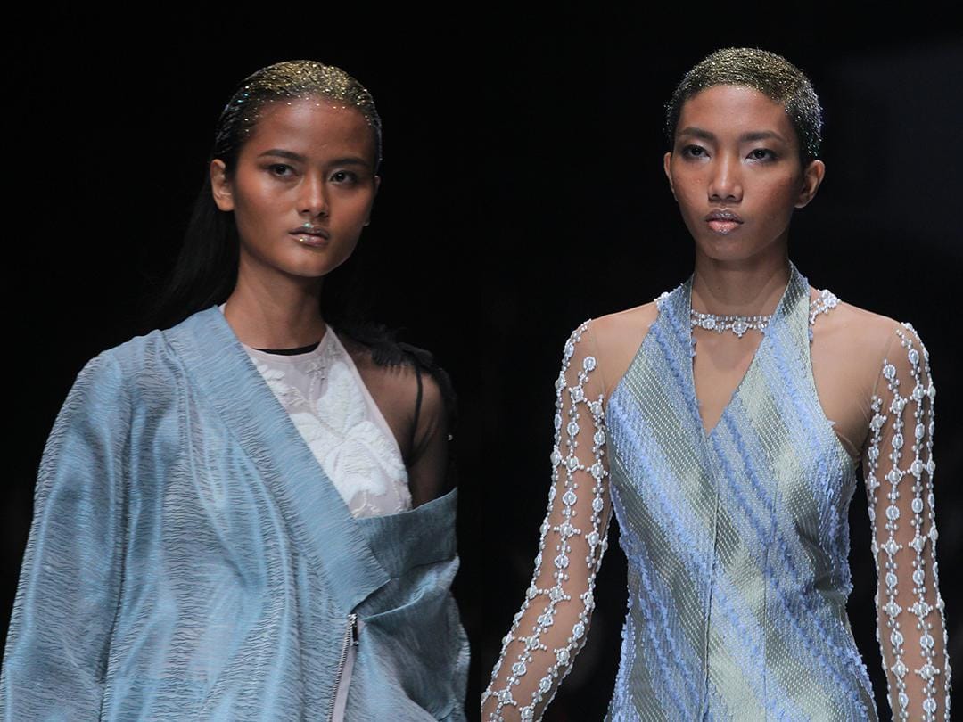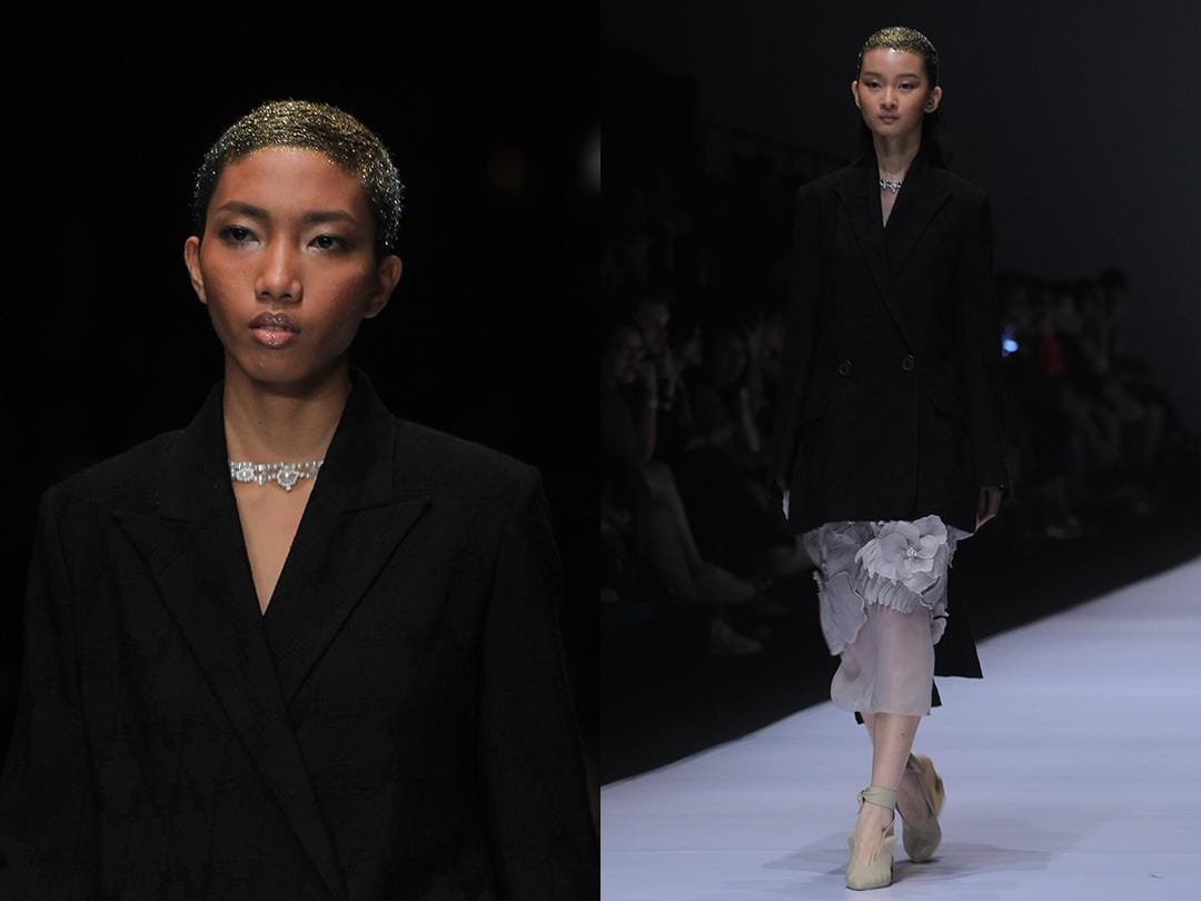 Tidak hanya hidup karena nilai emosional yang dibangun saat presentasinya, signature Toton yang memadukan keberagaman budaya dan menghasilkan berbagai siluet kontemporer terus memukau. Eksplorasinya pada material menghasilkan beberapa outerwear yang tampak premium dengan memakai kain kinran - yang ditenun dengan benang berlapis kertas emas (gold foil) - menciptakan efek metalik yang natural. Jaket berkerah kimono dengan aksen zipper yang dikenakan ala dropped shoulder menjadi gaya kekinian yang artsy. Sementara bunga-bunga yang dibordir tiga dimensi menjadi focal point yang menarik. "Tumbuh" pada atasan transparan, rok berpotongan pensil, hingga pada bagian lengan. Tapi yang menarik adalah saat melihat keberhasilannya mengubah motif batik Truntum yang dituangkan sebagai detail beading yang super delicate.
