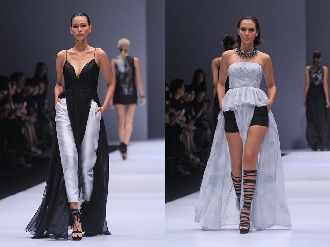 Apa yang membuat koleksi ini tampak menarik adalah sajian digital printing yang dikemas seperti seni dalam material bahan yang berkualitas. Tahun lalu rasanya cukup bagi Yosafat untuk "pamer" akan kemampuan craftmanship-nya. Pesannya sih masih sama, female empowerment. Hanya pieces-nya lebih wearable untuk dikenakan sebagai busana sehari-hari - bahkan beberapa dress bisa dikenakan dengan celana jeans sekali pun. Yosafat paham kalau tahun ini, sisi idealis-nya nggak perlu berlebihan, yang penting jualan jalan terus!