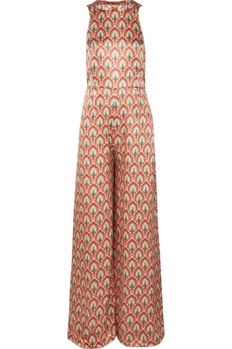 Lola open-back printed silk-satin jumpsuit, Seren, $729