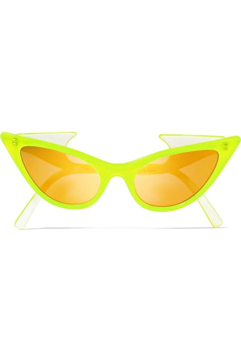 + Adam Selman The Prowler cat-eye neon acetate mirrored sunglasses, Le Specs, $79