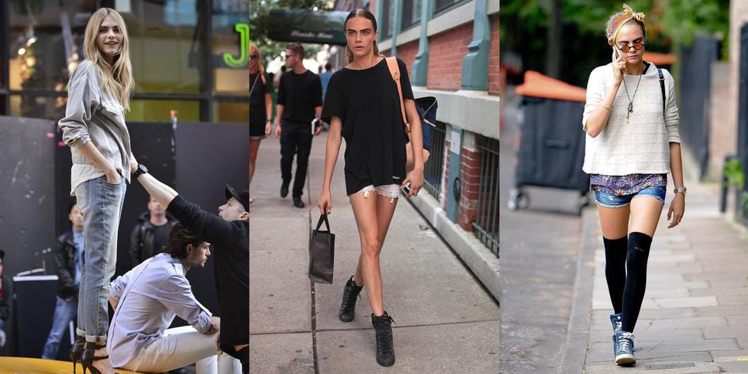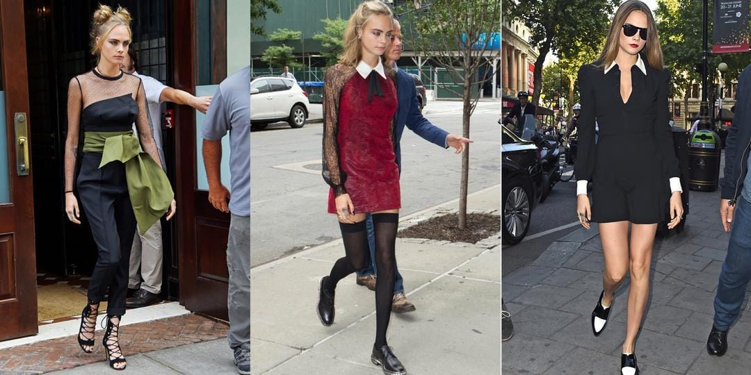 Untuk kamu yang suka dengan tampilan chic, kamu juga bisa mencontek inspirasi gaya Cara Delevingne. Pilih busana dengan detail-detail cantik seperti laces atau pita berwarna kontras.