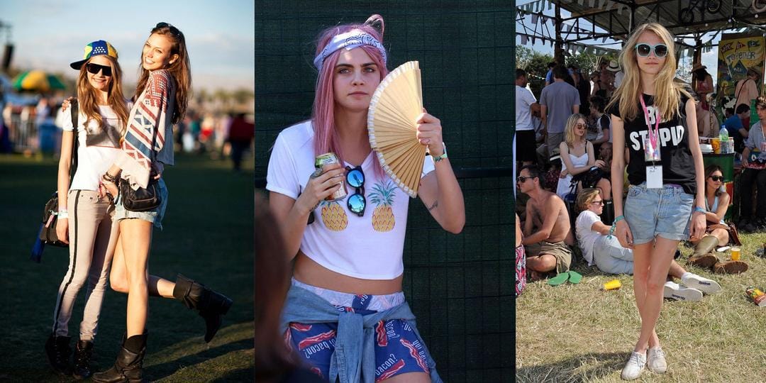 Saat menghadiri event musik, pilihan gaya Cara Delevingne cenderung lebih santai namun tetap terlihat playful. Jaket kulit, denim short ditambah aksesori headband atau topi jadi andalan model cantik ini.