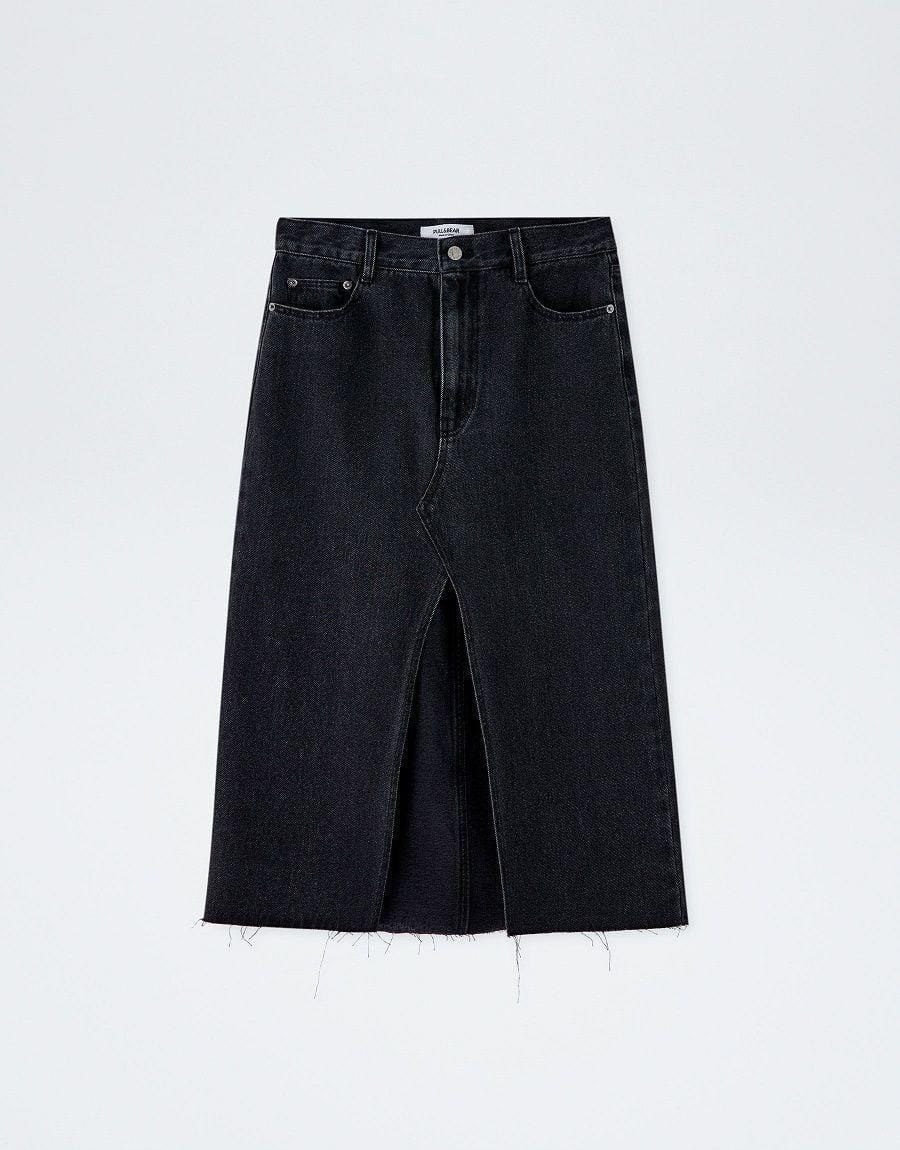 Denim midi skirt with front slit, Pull & Bear, IDR 499,900