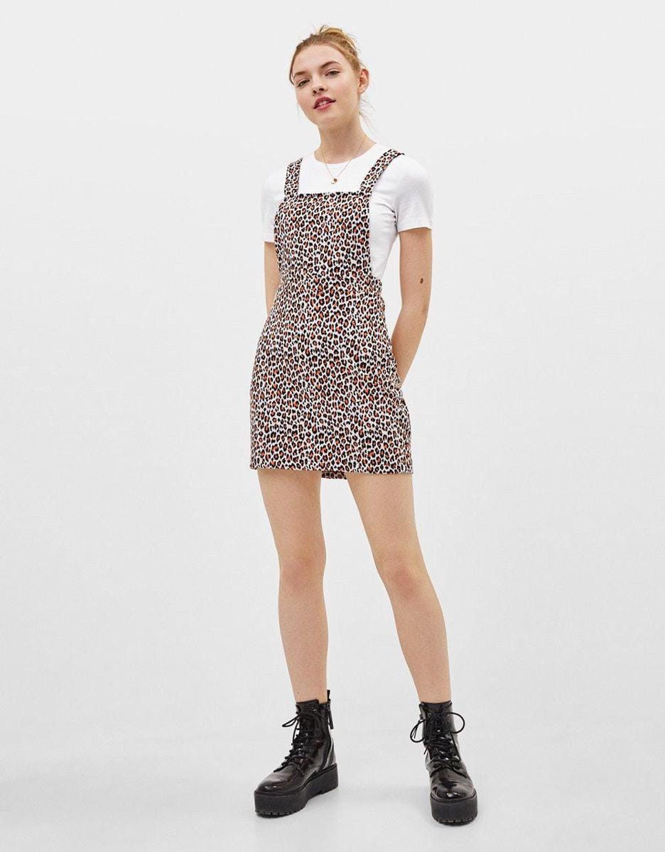Leopard print pinafore dress, Bershka, IDR 339,900