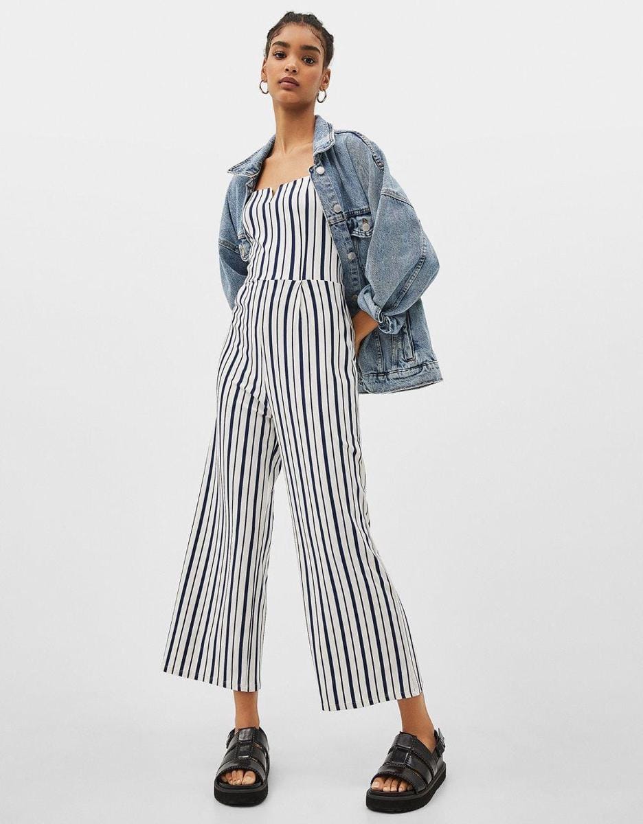 Long jumpsuit with square-cut V-neckline, Bershka, IDR 359,900