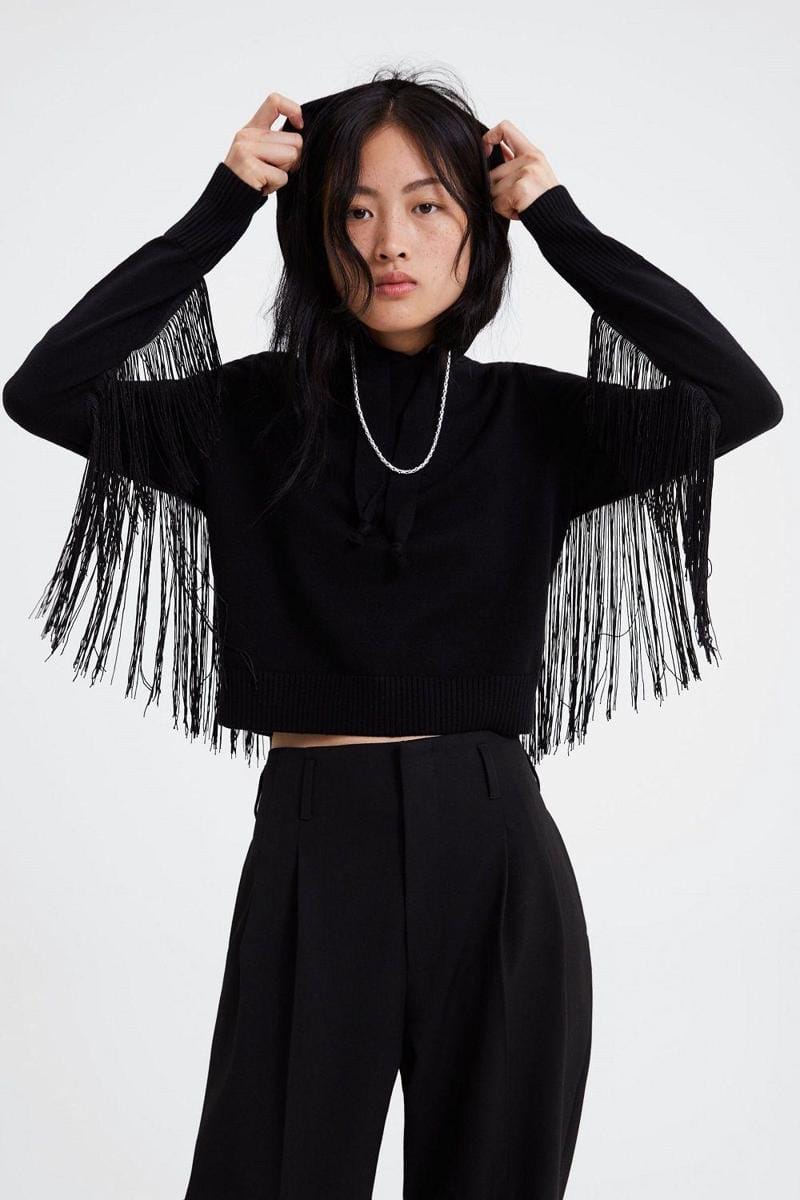 Knit hoodie with fringing, ZARA, IDR 379,900