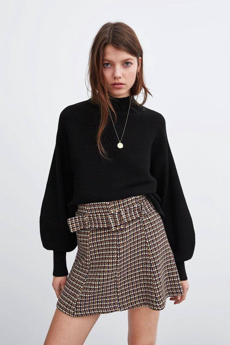 Belted tweed mini skirt, ZARA, IDR 299,900