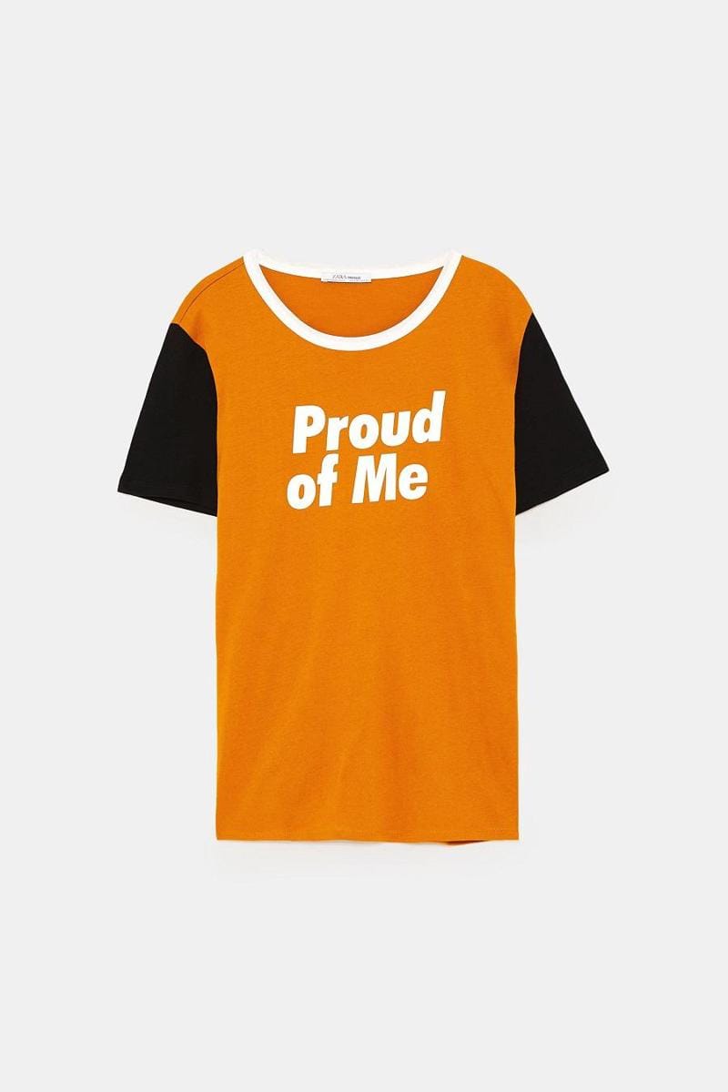 Bejewelled slogan T-shirt, ZARA, IDR 449,900