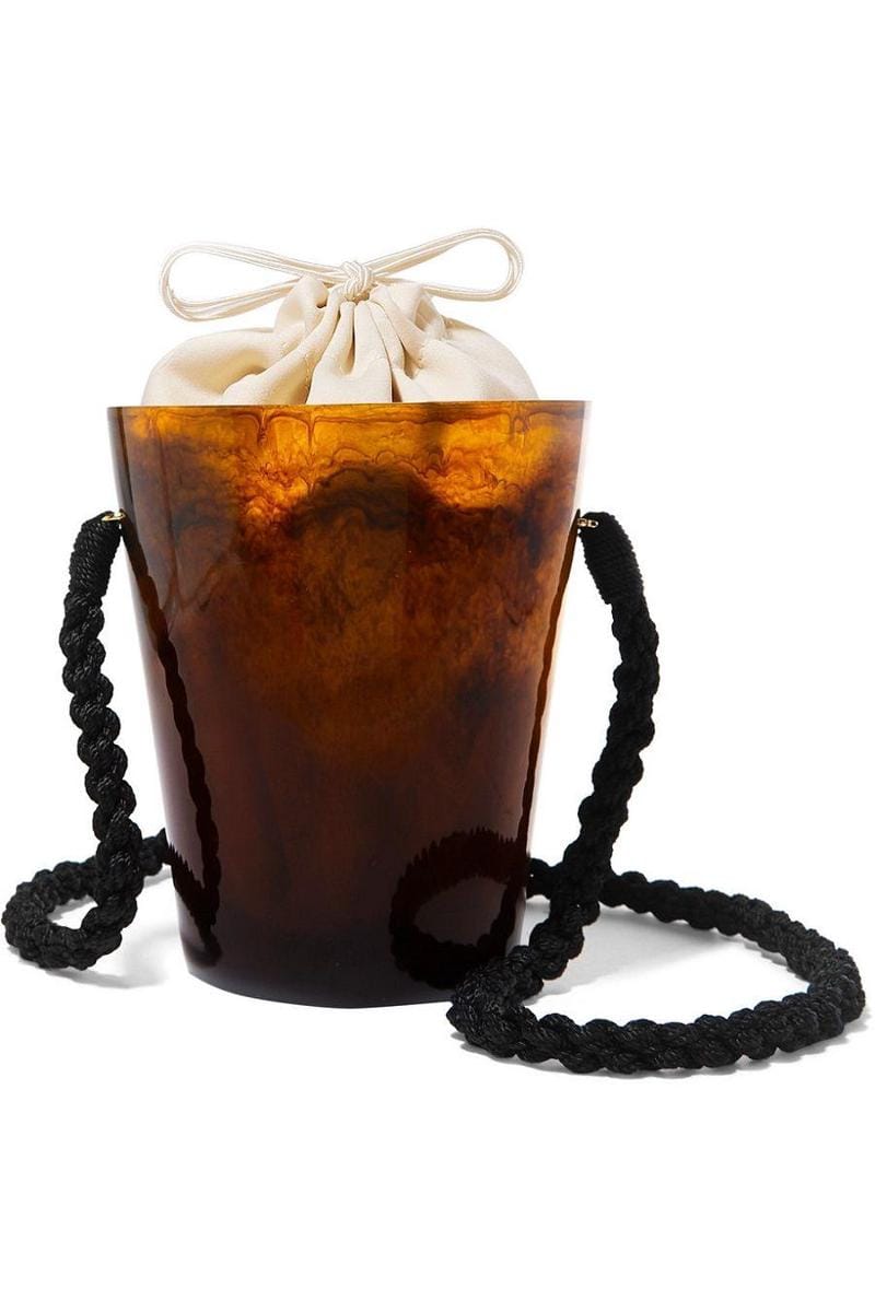 Lirio resin and silk-satin bucket bag, Montunas, $345