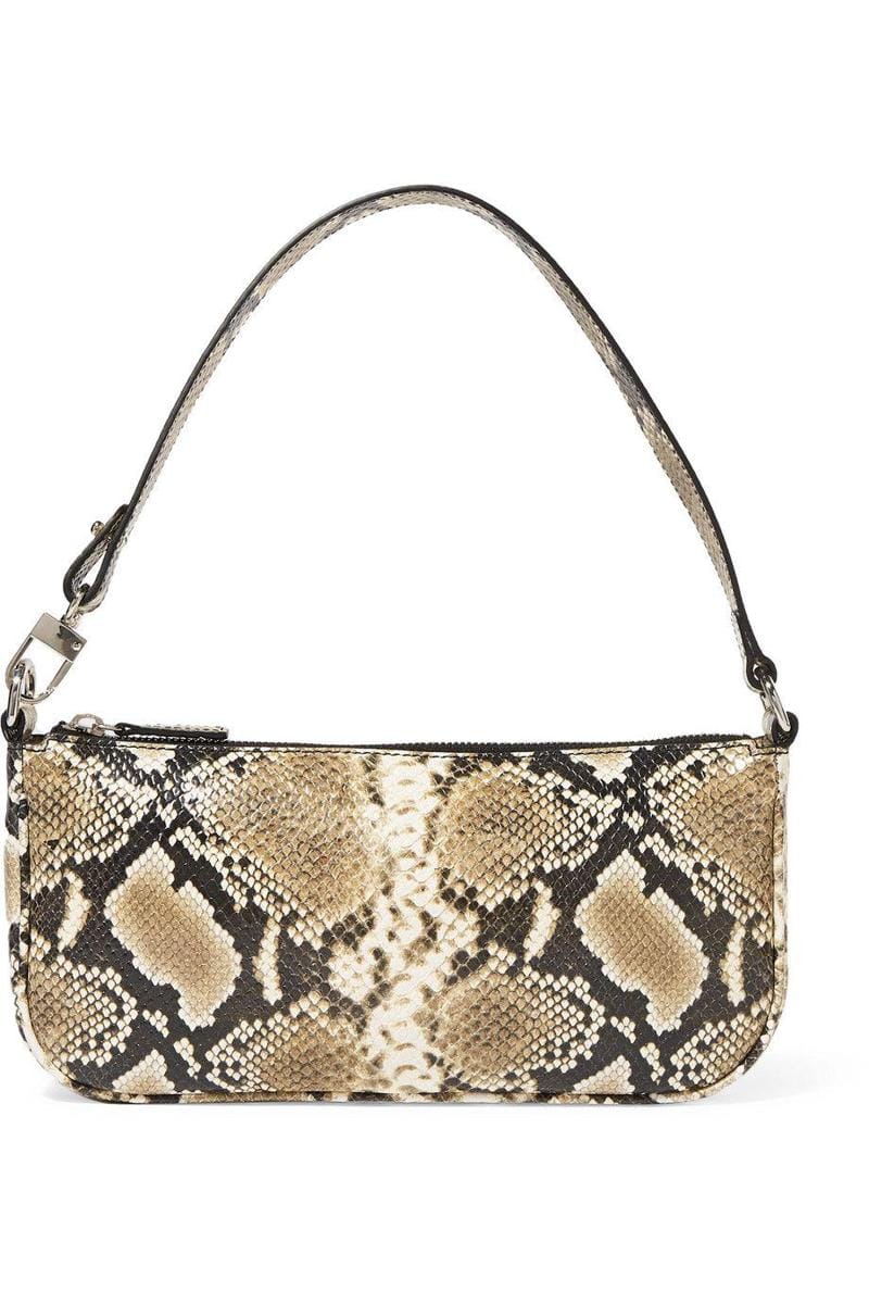 Rachel snake-effect leather shoulder bag, BY FAR, $305