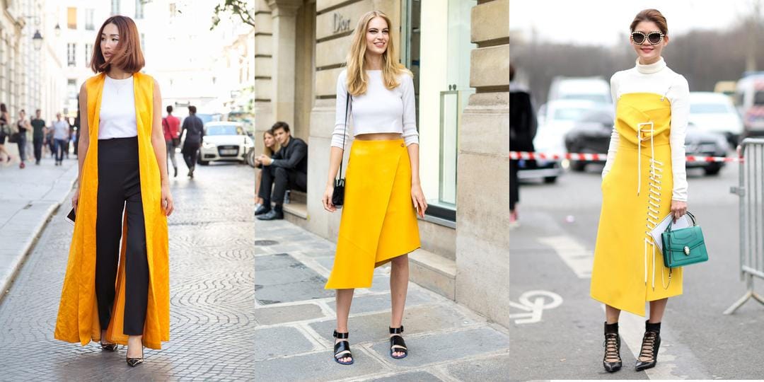 4. Ingin tampil aman? Maka kombinasikanlah warna kuning dengan fashion item berwarna putih. Kamu akan terlihat fashionable dan sophisticated dalam sekejap.