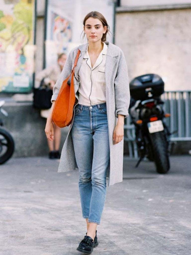 Kehabisan ide berbusana saat ke kantor? Jadikan piyama kamu sebagai dalaman lalu pasangankan dengan celana jeans kesayanganmu. Step terakhir, coat panjang bisa digunakan untuk layer sebagai luaran. Pas banget untuk ditiru hari Jumat dan di musim hujan seperti saat ini. Sentuhan sepatu loafers atau ankle boots buat total-look lebih rapi!