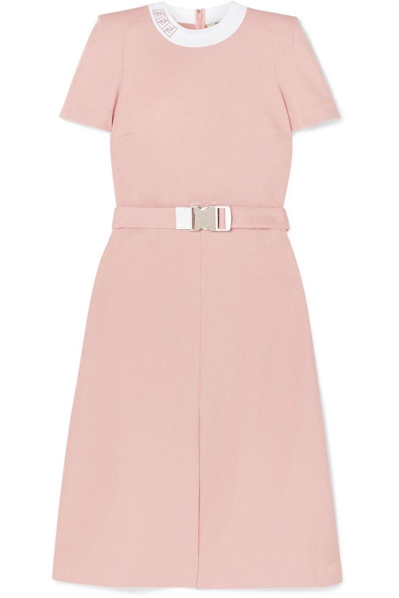 Intarsia-trimmed belted grain de poudre midi dress, Fendi, $1,248