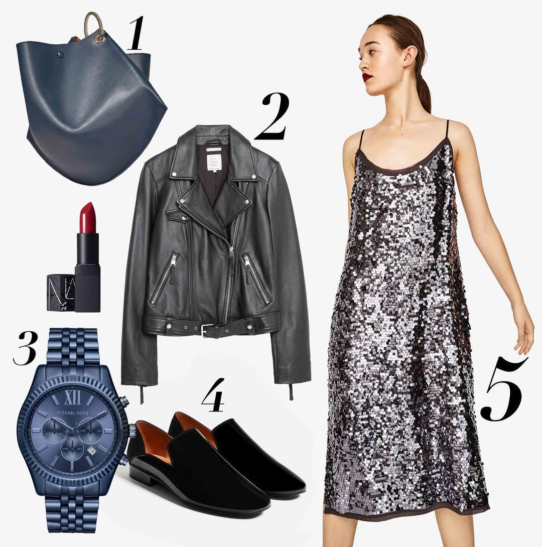 Happy Friday, TGIF Bela! Yuk tampil super keren di hari Jumat dengan mix and match sequined dress dan perfecto leather jacket. Sequined dress yang super chic dan seksi akan terlihat lebih stylish dengan perpaduan leather jacket untuk kesan gaya yang nggak boring. Padukan patent leather loafers untuk kesan yang lebih kasual di hari Jumat. Lengkapi juga total look kamu dengan chrono watch dari Michael Kors dan leather dumpling bag. Happy TGIF!
