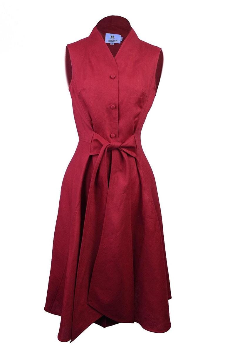 Red linen sleeveless buttoned dress, KRATON, MASARI