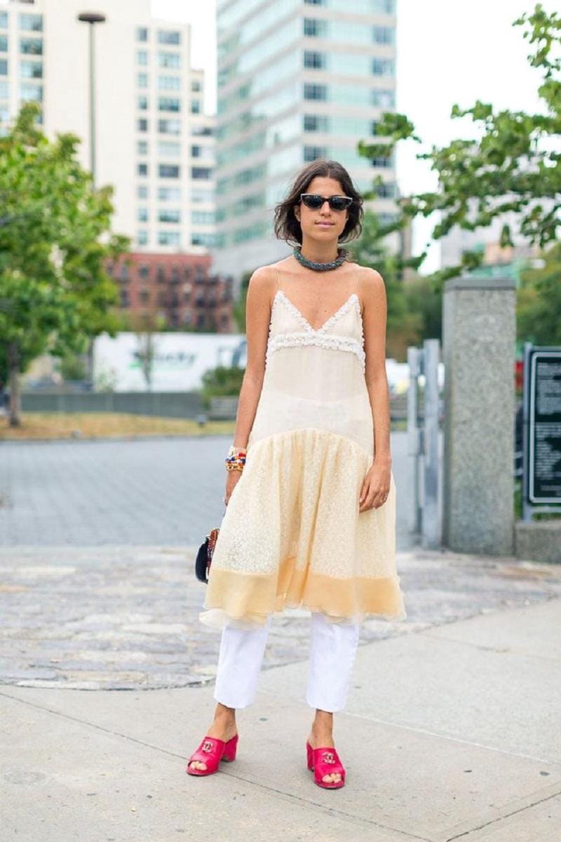 Kalau kamu tak ingin memakai dress, bisa menggantinya dengan celana warna pink. Kesan manis tetap terlihat dari celana pink tersebut. Untuk yang terlihat lebih colorful dapat memasangkannya dengan atasan warna merah, atau warna putih untuk gaya yang lebih netral. Jangan lupa untuk pasangkan dengan statement earrings ya!