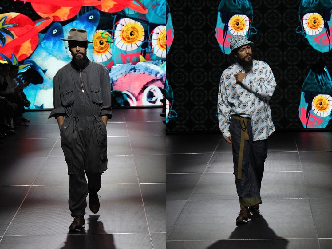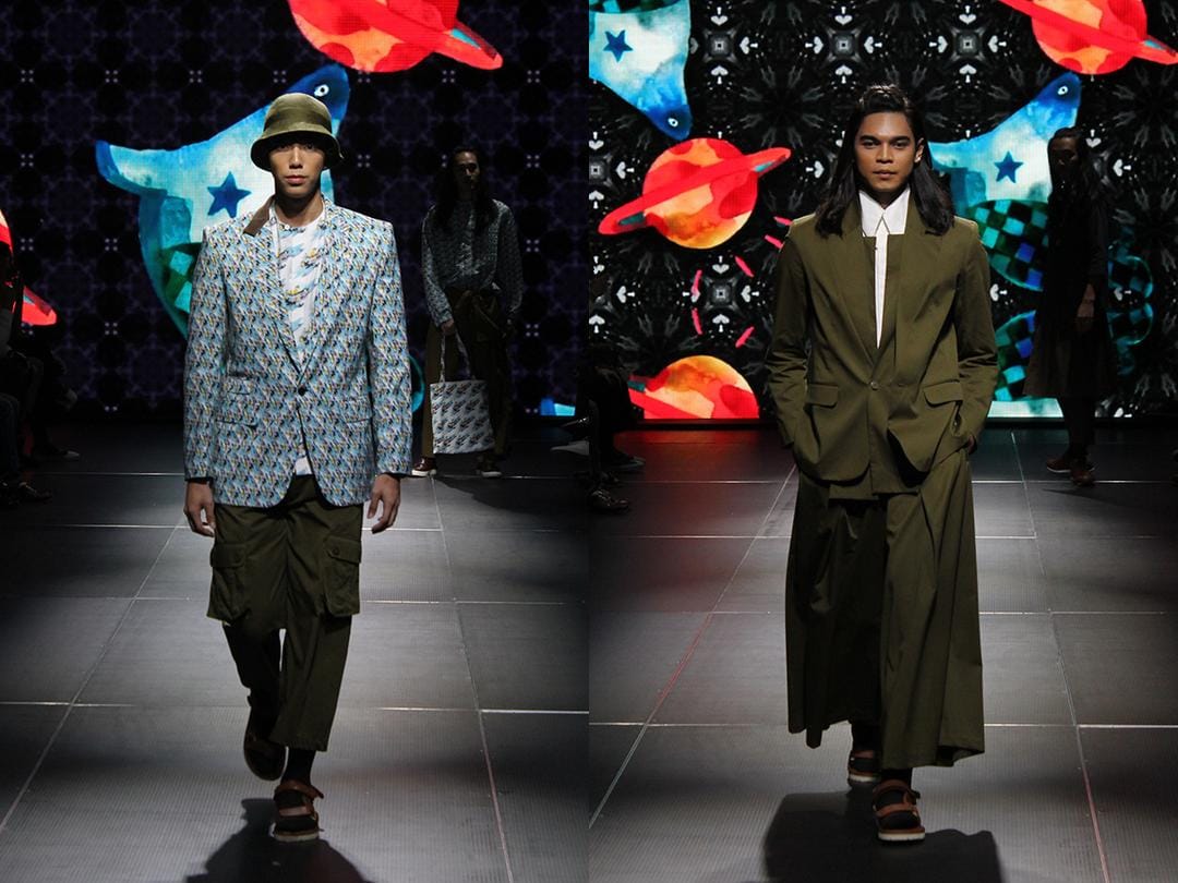 Namun Rama is Rama. Pribadinya yang sudah nyentrik, tetap saja menghadirkan pakaian pria yang anti serius dan nggak maskulin-maskulin banget. Bahkan dalam palet warna maskulin seperti coklat, biru, hijau, ia tetap memasukan warna pink salmon sebagai twist-nya. Ditambah beberapa model androgyny yang muncul di atas runway, menjadi bukti kalau Rama mau menyampaikan bahwa karakter pria itu ada banyak dan zaman sekarang jangan takut untuk berekspresi.