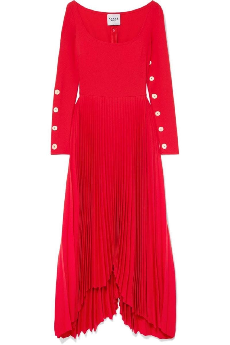 Pleated crepe maxi dress, A.W.A.K.E, $909
